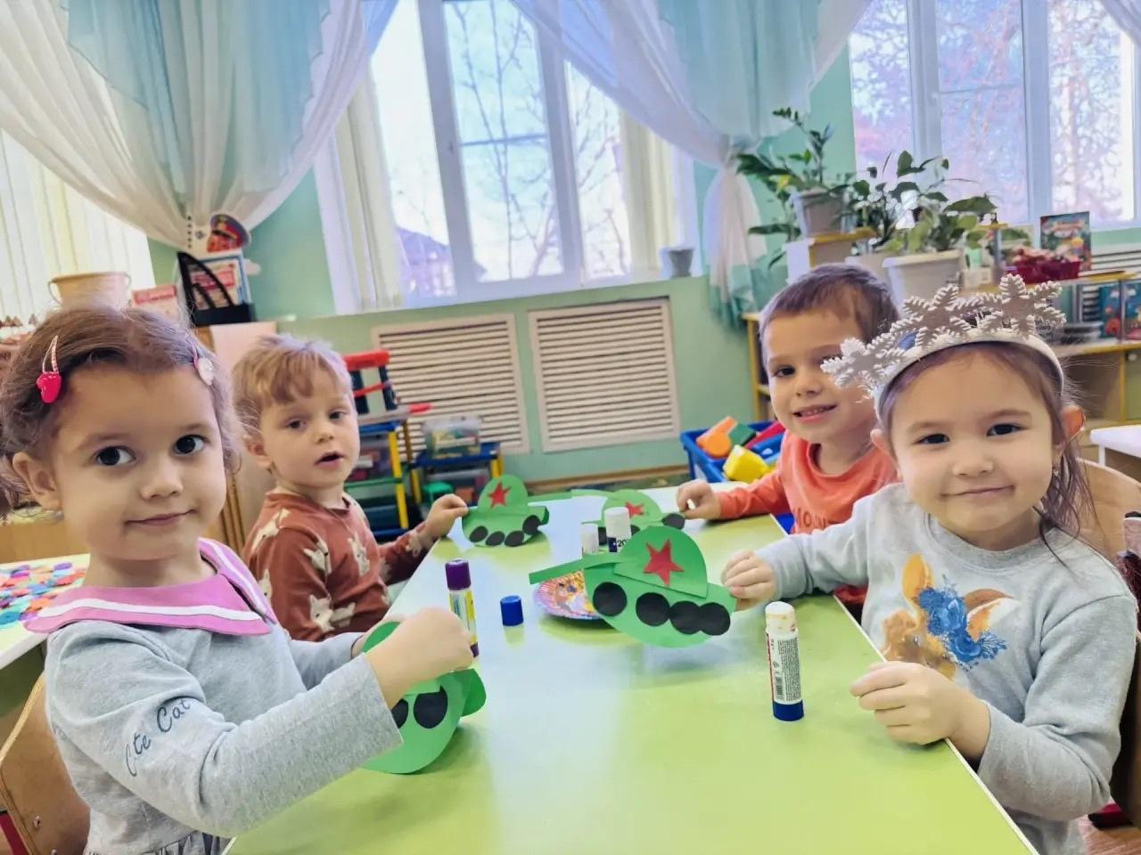 Итогом занятия стала творческая работа — аппликация «Танк». Каждый проявил внимательность, усидчивость и аккуратность, собирая свой танк из деталей. Посмотрите, какие красивые, мощные танки у нас получились! Гордимся нашими мастерами! 🛠️🎨