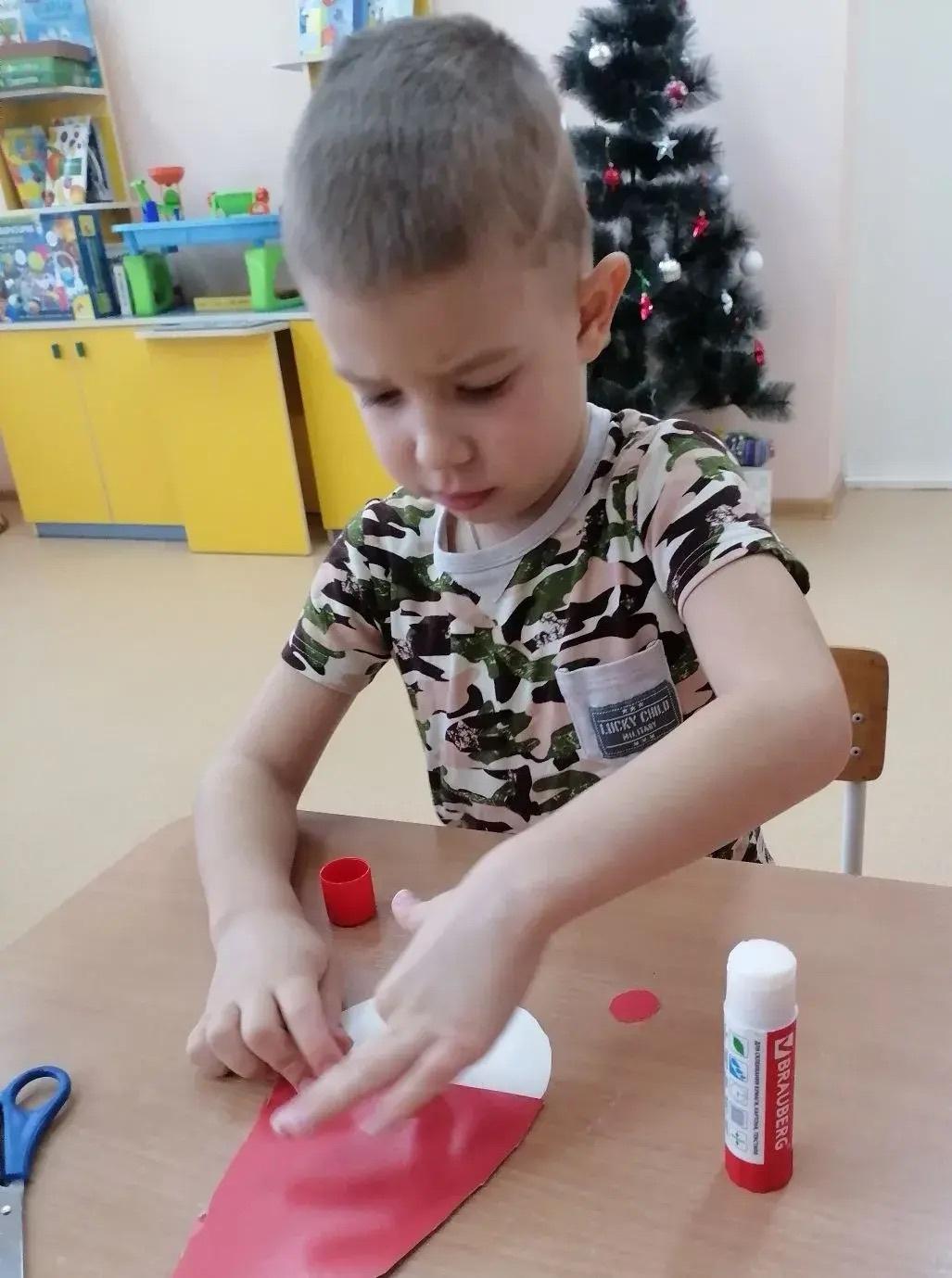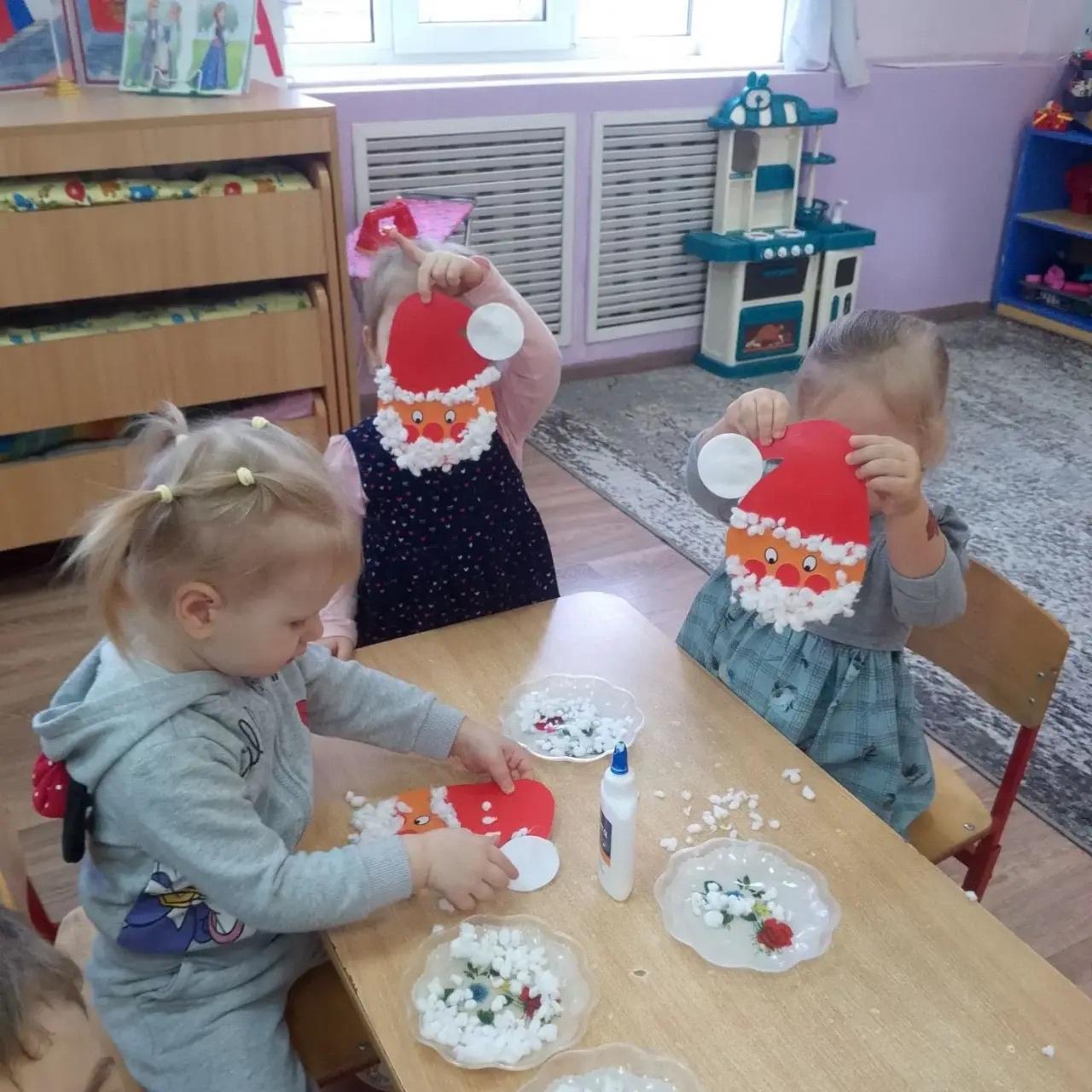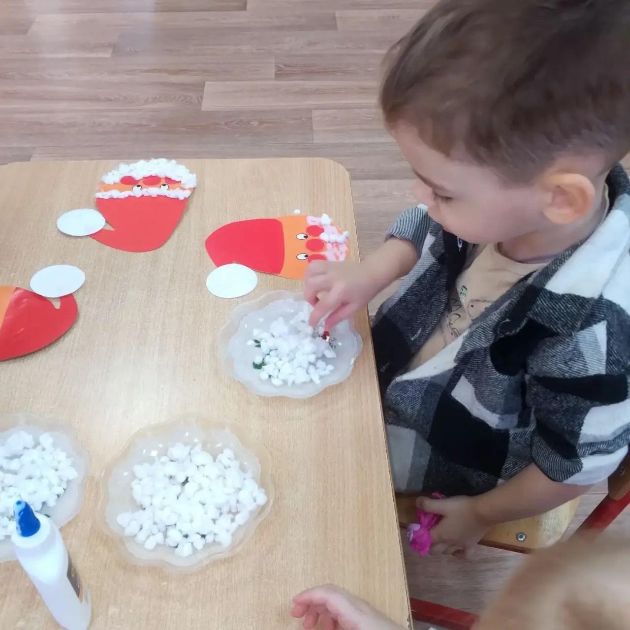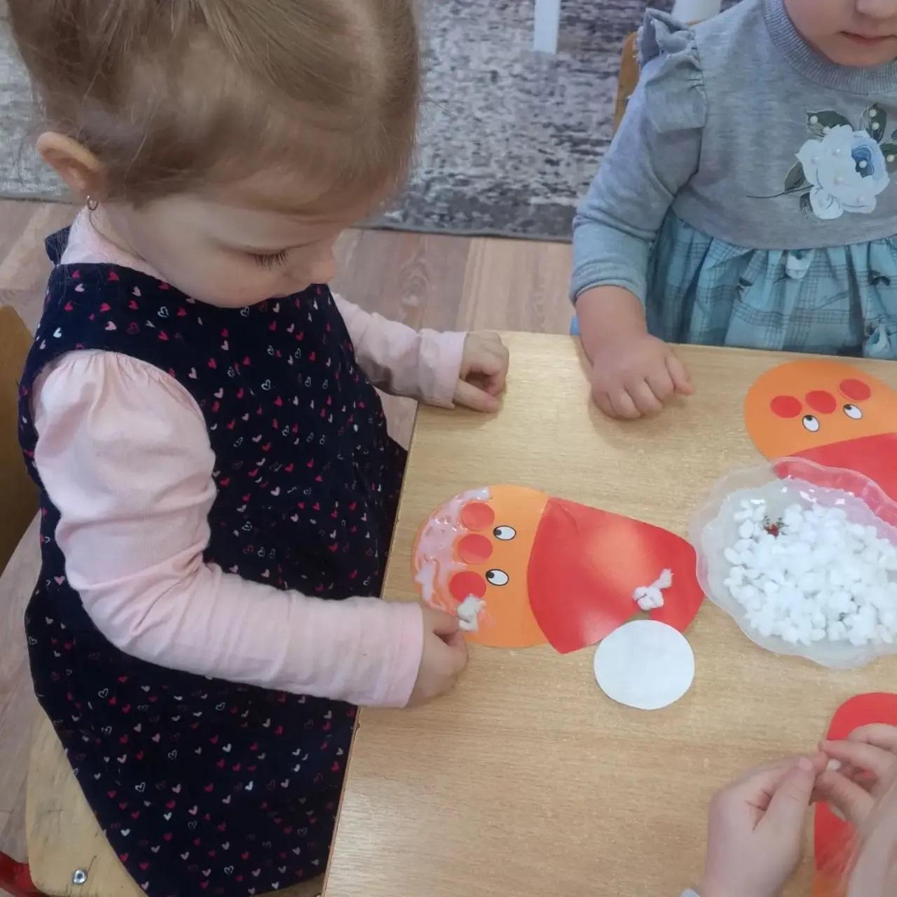 Группа 1. ( первая младшая).Аппликация " Дед Мороз " с использованием ваты и ватных дисков. Развиваем мелкую моторику.